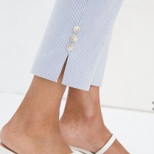 In a summery stripe, these So Slimming® Brigitte pants go everywhere you do this spring and summer, ready to take on career and casual events in stride. We've reinvented this customer-favorite style with a new slimming panel that trims and shapes all the way around, beautifully smoothing your silhouette from every angle. The ankle length is perfect with flats or heels, accented with buttons at the side vents, ready to show off your favorite sandals.