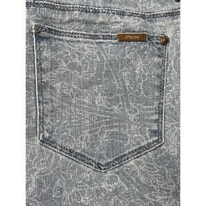 Factory faded light wash floral print stretchy denim