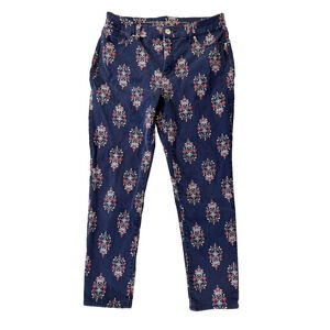 Chico's So Slimming Girlfriend Ankle Jeans Womens Size 1 Navy Blue Floral Print