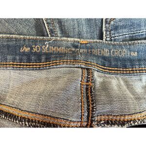 Flattering and Comfortable Chico's So Slimming Girlfriend Crop Jeans in a medium wash, Features a slimming panel for a smooth silhouette, classic five pocket styling, and cropped length. Perfect for everyday casual wear. Excellent used condition, non-smoking home.