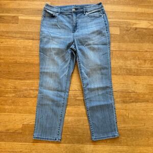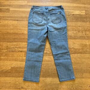 Chico's So Slimming Girlfriend Crop medium wash striped jeans size 1 (8) b17