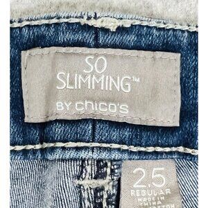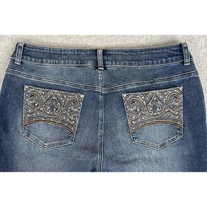 Chico’s So Slimming Jeans 2.5 R Blue Straight Leg Embellished Rhinestone Pockets