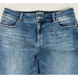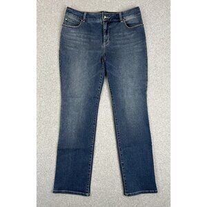 Elevate your denim collection with these Chico’s So Slimming Women’s Jeans, Size 2.5 Regular. Designed with Chico’s signature So Slimming® technology, these jeans feature a flattering straight leg cut and comfortable stretch fabric blend. The standout detail is the embroidered and rhinestone embellished back pockets, adding a stylish touch to your everyday look.