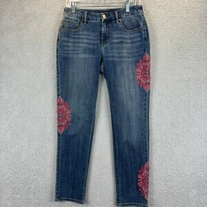 Chicos So Slimming Jeans XS Medallion Embroidered Girlfriend Ankle Pink Red 00R
