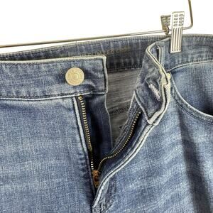 Excellent preowned condition. Medium wash high rise "So Slimming Slim Leg Crop" jeans with embroidery detail near leg hem. Zipper/button closure. 5-pocket design. Cotton/polyester/Lycra material. Approx. measurements: Waist 38", inseam 23", rise 11.5". Size 3R (16R).