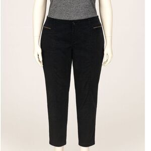Chico’s So Slimming Ankle Pants in classic black, women’s size 3 (XL / 16). Designed for a sleek, flattering fit, these pants feature the brand’s signature So Slimming® technology with a built-in slimming panel for a smooth silhouette. Made of a comfortable 98% cotton / 2% spandex blend for light stretch and shape retention. Details include front zipper pockets with gold-tone hardware, back patch pockets, and a mid-rise waist.