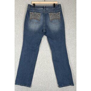 Chico’s So Slimming Women’s Jeans Size 3 Straight Leg Blue Denim Embellished