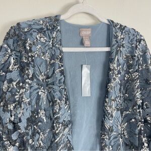 Chico's Soho Sequin Floral Lace Novelty Sweater Open Front Cardigan Women Medium
