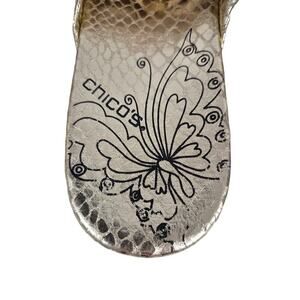 Chico's Sole Metal Gold Faux Snakeskin Ribbon Thong Flat Sandals Sz 8