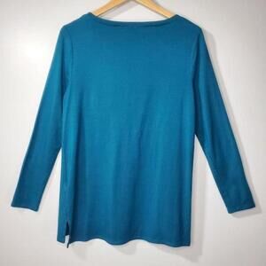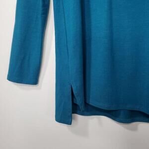 Chico's Solid Knit Tunic Top Long Sleeve Blouse Blue Size 0 / Small