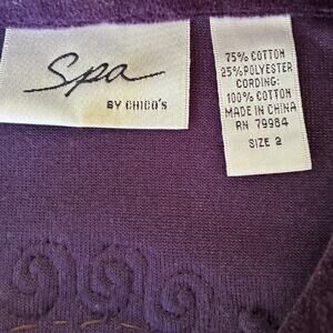 Chico's Spa Jacket Women's Sz 2 (L) Eggplant Full Zip Embroidered Velour Jacket