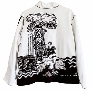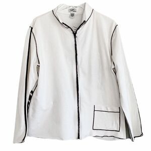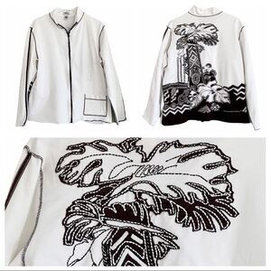 Chico’s Spa by CHICO’S Ivory with Brown Emblems & Trim Jacket Size 3 or XL
