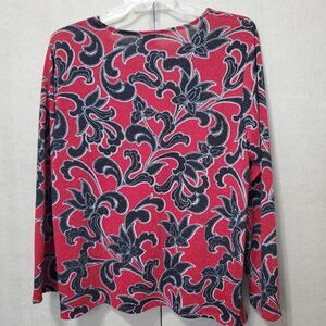 This is a Chico's Sparkle Stitch Scroll-Print Long Sleeve V-Neck Knit Top Size 3 (XL)