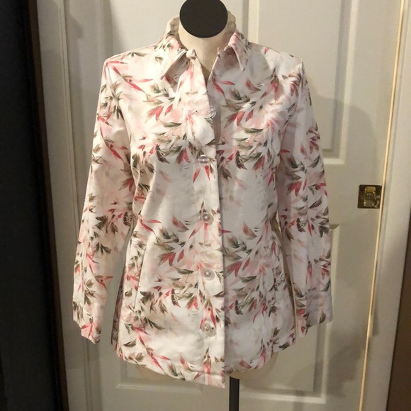 Chico’s spring coat. Brand new with tags. Very pretty print. 2 front pockets. Chico’s size 2.