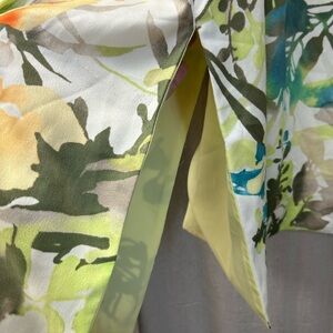 Chicos' Spring Paradise Duster/ Size3 / excellent pre-owned condition ! Add a new favorite to your wardrobe with our Spring Paradise Duster. A soft lime colored lining highlights the jacket's exquisite multicolored floral print exterior. Update your tunic and jeans combo with this multifunctional duster that's available in regular and petite sizes.