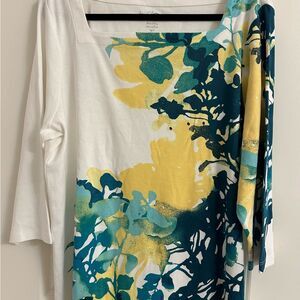 Chico's Square Neck Tee Spring Floral Theme Size 4 3/4 Sleeve Color Teal