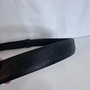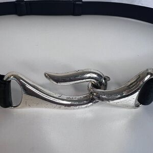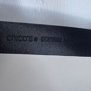 Chicos Statement Belt Silver Metal Hook Buckle Black Leather Adjustable MD**