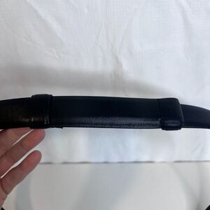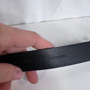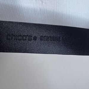 Chicos Statement Belt Silver Metal Hook Buckle Black Leather Adjustable MD**