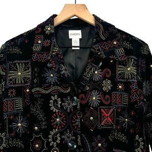 Chico's Statement Jacket Black Velour Colorful Embroidery Studded Boxy | 1 8/10