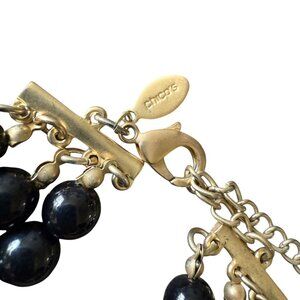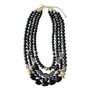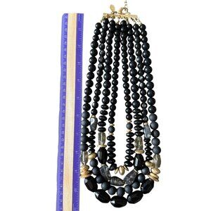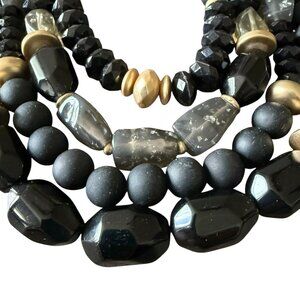 Chicos Statement Multi-Strand Beaded Necklace Black Gold Adjustable Length