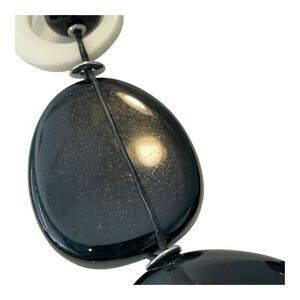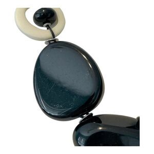 Chico's Statement Necklace Black Cream Silver Large Stones Rock Plastic Beads