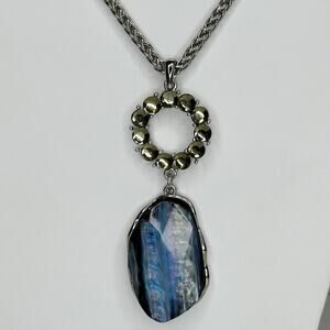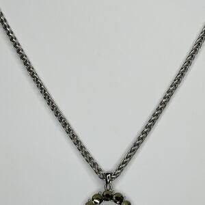 Chicos Statement Rhinestone Pendant Silver Tone Barrel Chain Necklace ✨