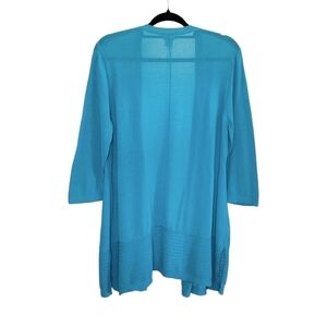 Chico's Stitch-Detail Open Front Mid-Length Cardigan Sweater Women's L Turquoise Blue