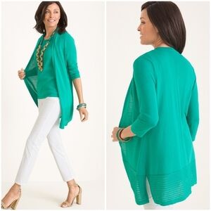Chico's Stitch-Detail Open Front Mid-Length Cardigan Sweater Women's L Turquoise