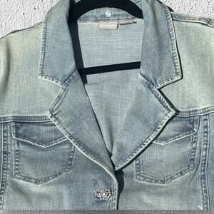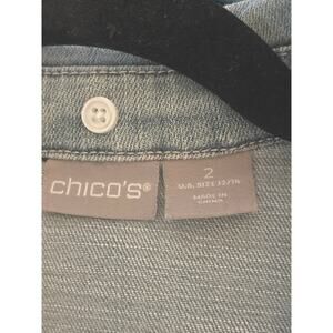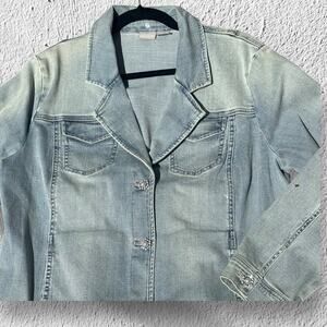 Chicos Stonewash Denim Jacket Pearl Rhinestone Buttons 2/12-14 Cotton Spandex Boho