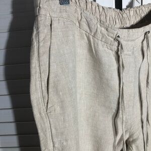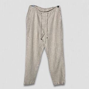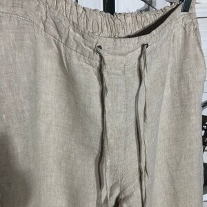 Chico's Straight Leg Pants High-Rise Adjustable Drawstring 100% Linen Beige 6