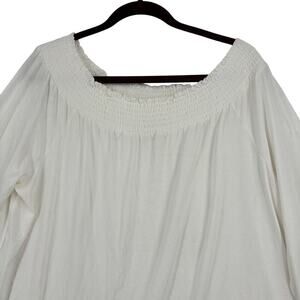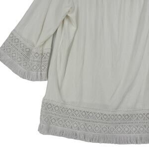 Chico's Stretch Knit Blouse Top Boat Neck Crochet Fringe Lace Trim White Size L