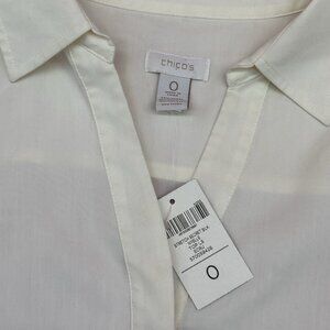 Chicos Stretch Secret Silk Size 0 / US Small Ecru Ivory Button Up Blouse Top NWT