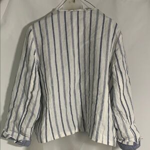 Chico’s Stripe Linen Blend Open Frayed Edge No Collar Blazer Jacket Size 12