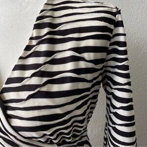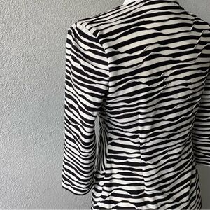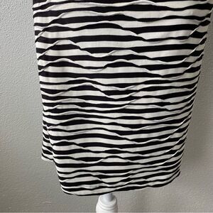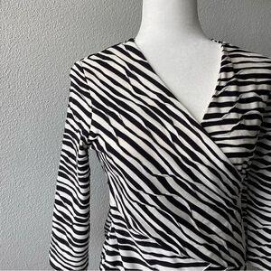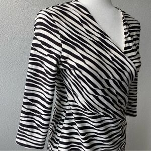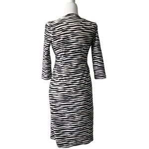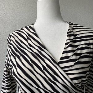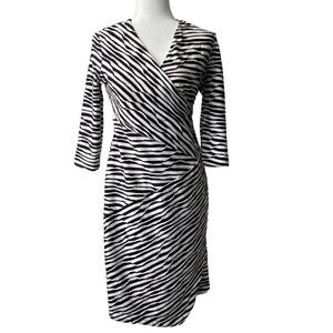 Chico’s Stripe Print Surplice Wrap Neck Black White Sheath Dress