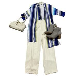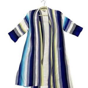Chico's Striped 0 4 Long Line Kimono Cardigan Open Coastal Stripe READ