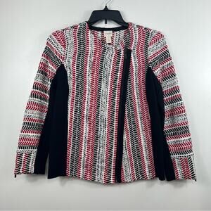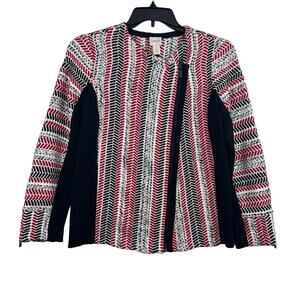 Chico's Black Red White Mixed Woven Ribbed Knit Asymmetrical Zip Moto Jacket