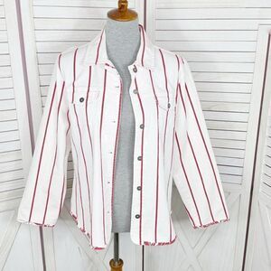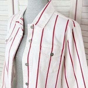 Chico’s Striped Denim Shirt Jacket Shacket White Red