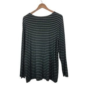 Chico’s | Striped Essential Layer Lurex Top Black & Gold Long Sleeve Stretch Tee