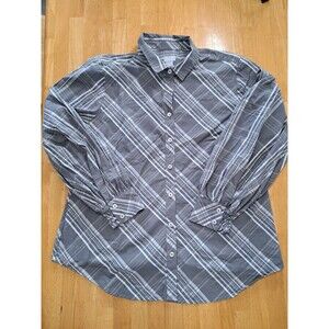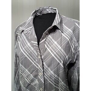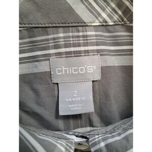 Chico's Striped Gray Long Sleeve Collared Button Up Shirt Women's Size 2 (US 12)