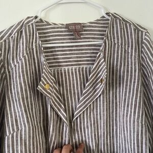 Stylish Chico's jacket with brown and white stripes. Perfect for any occasion. Light and comfortable.