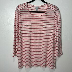 Chico’s Striped Knit Linen Pocket 3/4 Sleeve Tee Blouse Size XL