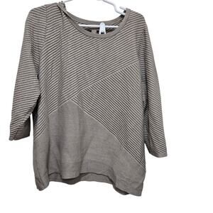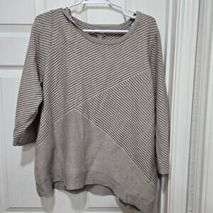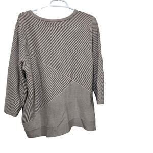 Chico’s Striped Knit Top Size XL 3 Gray Heavy Sweater 3/4 Sleeve Casual