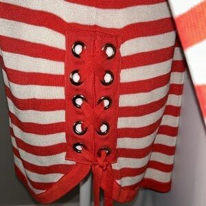 #StripedSweater #CozyStyle #CasualChic #LaceUpDetails #FallFashion #WinterStyle #TomatoRed #TaupeStyle #ClosetGoals #OOTD #PoshStyle #EUC #TrendySweater #GrommetDetail #PoshmarkFinds