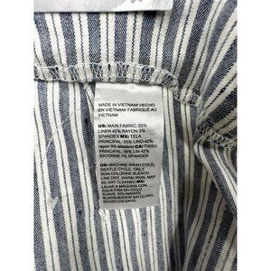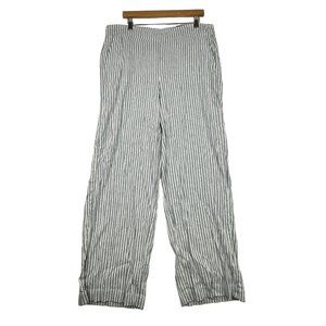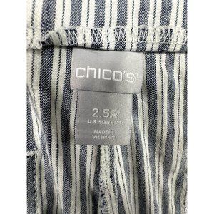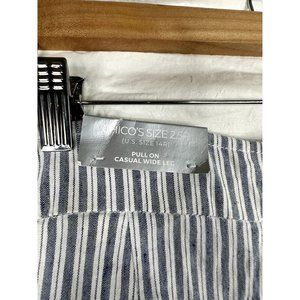 Chicos Striped Linen Blend Casual Wide Leg Pull On Pants sz 14 Blue/White
