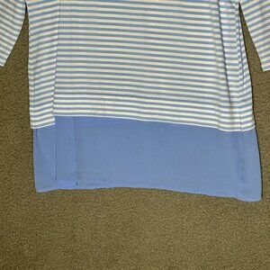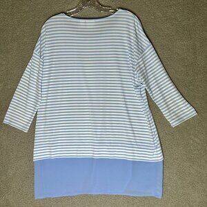 Chicos Striped Oversize Tunic Top Womens Sz M Blue White Layered Hem Nautical