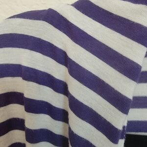 Stylish striped cardigan in purple and white. Perfect for layering. Great condition