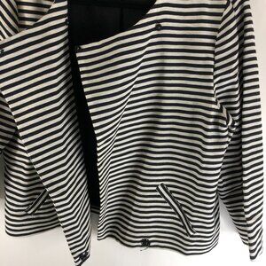 Chicos Striped Snap Button Asymmetric Blazer Jacket Black White L (Chicos 2)