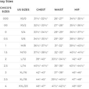Chico's size 0 = S/4 (see size chart). Pre-owned in very good condition, non-smoking home, pet friendly.