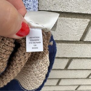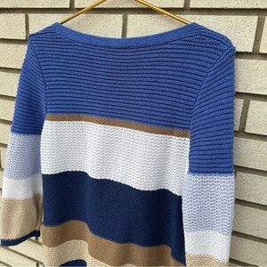 Chico’s Striped Textured Pullover Sweater Blue Tan White