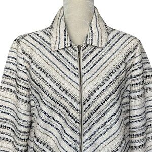 Chico’s Striped Tweed Jacket Coat Women’s Size 2 Regular Size 12-14 Neutral